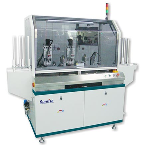 全自动铣槽机,用于在标准卡基铣出封装不同芯片所需要的卡槽。 该设备集铣槽、吸尘清洁、深度检测于一体。专业的夹具设计,使铣槽深度不受卡片厚度大小影响铣槽精度。预设8种标准模块的铣槽程序,可根据实际需要调用,参数修改方便。两组独立的X,Y工作台。可同时(或分开)完成不同形状的铣槽动作,解决了铣槽中心位修改困难的难题。Z轴铣槽深度由高精度伺服带动导轨、丝杆完成动作,解决了换刀烦琐的难题。个性完善的软件设计,使机械操作更加快捷、方便。卡片传送由伺服带动皮带完成动作,确保了机械的安全性、稳定性。深度检侧装置,确保机械铣槽的合格率。独特的拉卡结构,避免了由于静电出现的拉卡双张现象。
